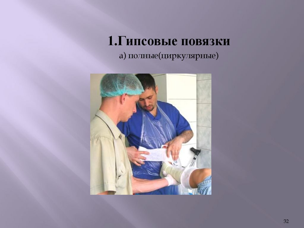 1.Гипсовые повязкиа) полные(циркулярные)