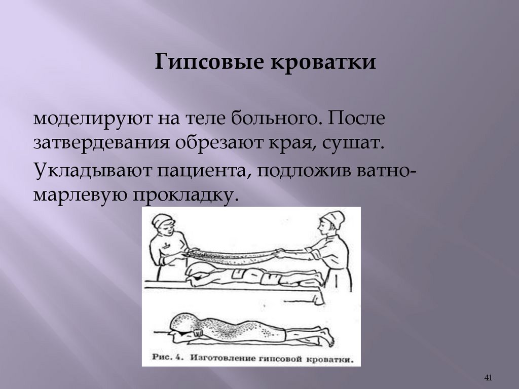 Гипсовые кроваткимоделируют на теле больного. После