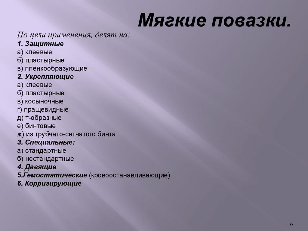 Мягкие повазки.По цели применения, делят на: