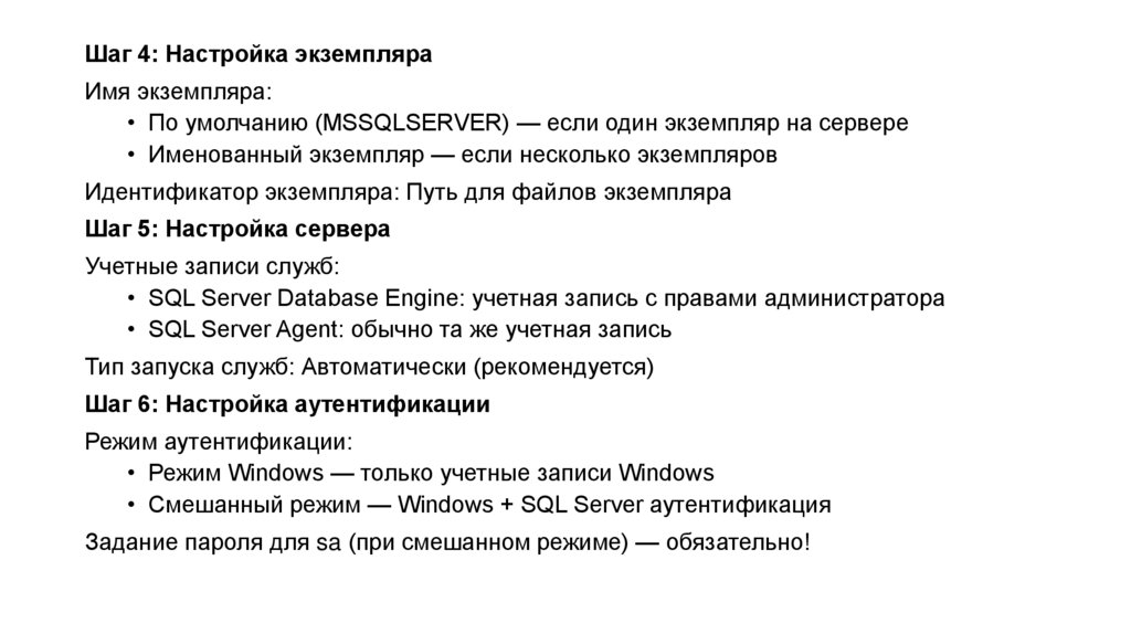 • Максимальный объем памяти сервера: Оставить ~1-2 ГБ для ОС, остальное SQL Server