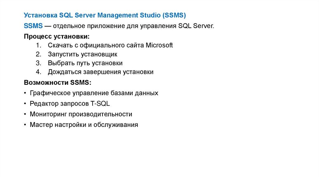 • Расширенные функции безопасности (Always Encrypted, Row-Level Security)