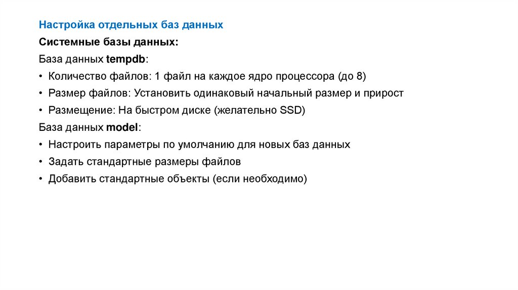 Настройка отдельных баз данныхСистемные базы данных: