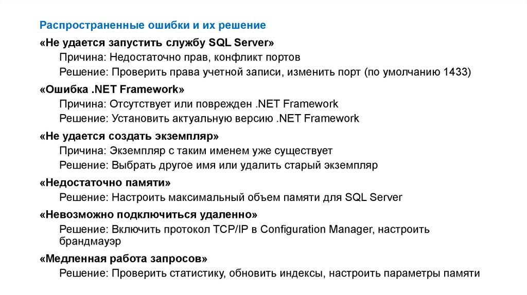 Распространенные ошибки и их решение«Не удается запустить службу SQL Server»