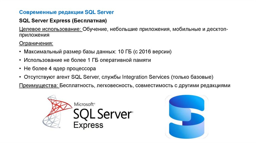 Современные редакции SQL ServerSQL Server Express (Бесплатная)