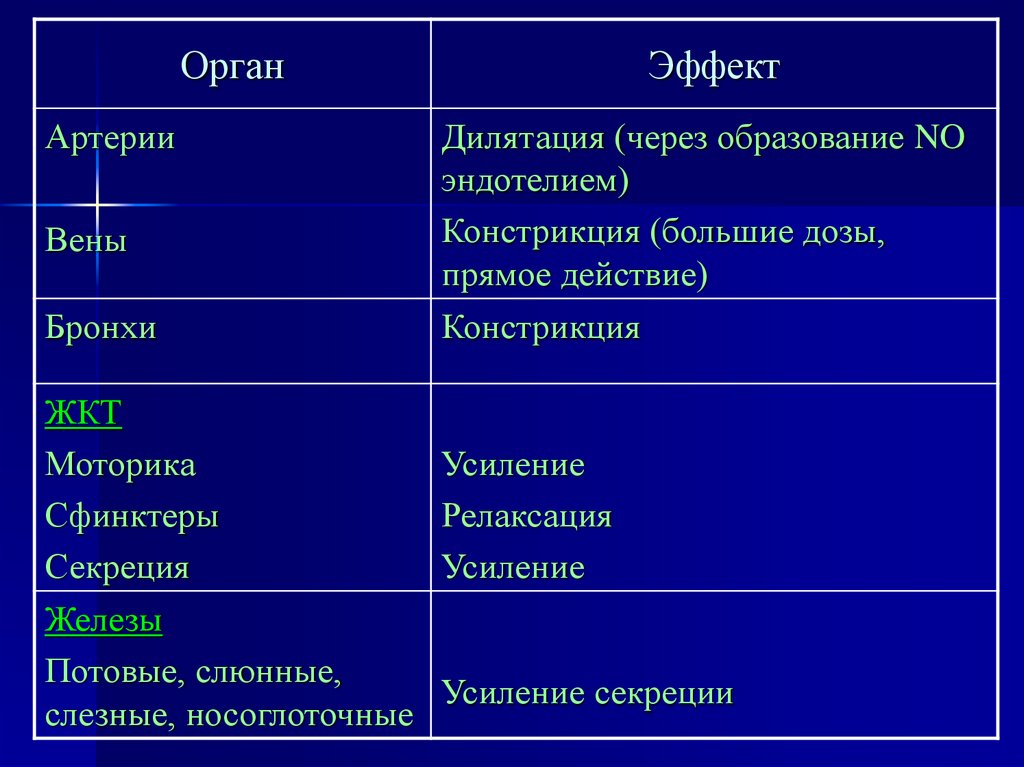 ацетилхолин вызывают более сильные
