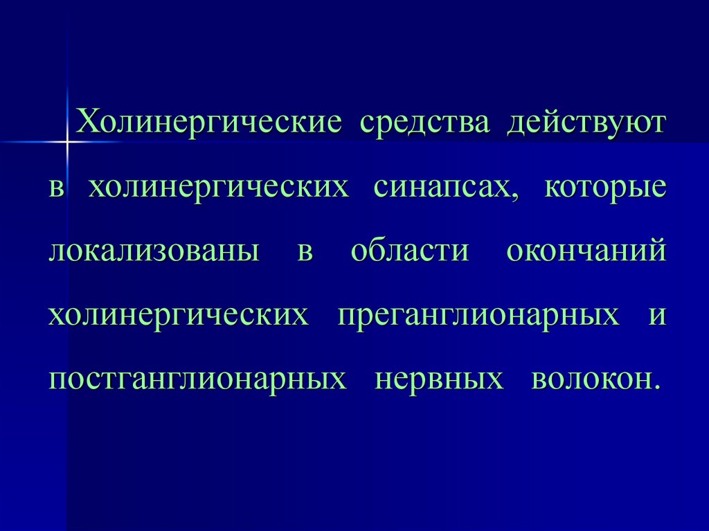 Холинергические средства действуютв холинергических синапсах, которые