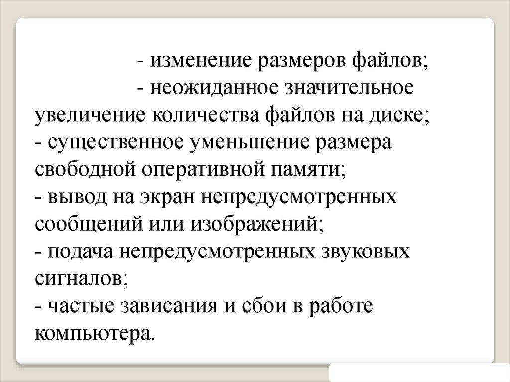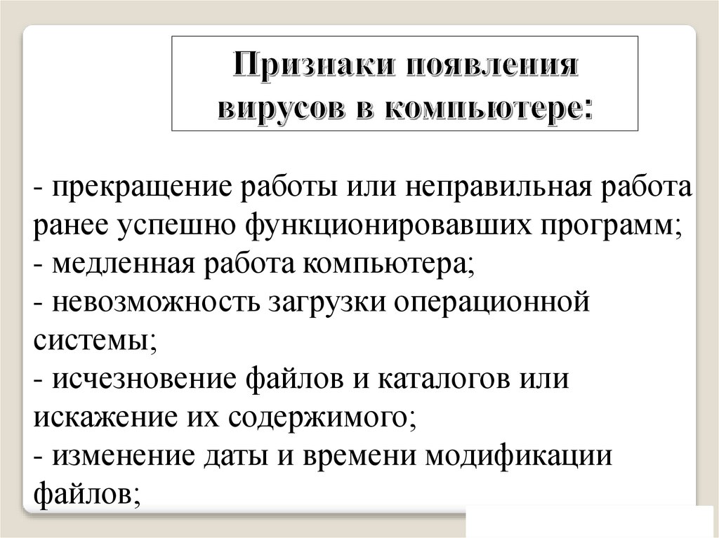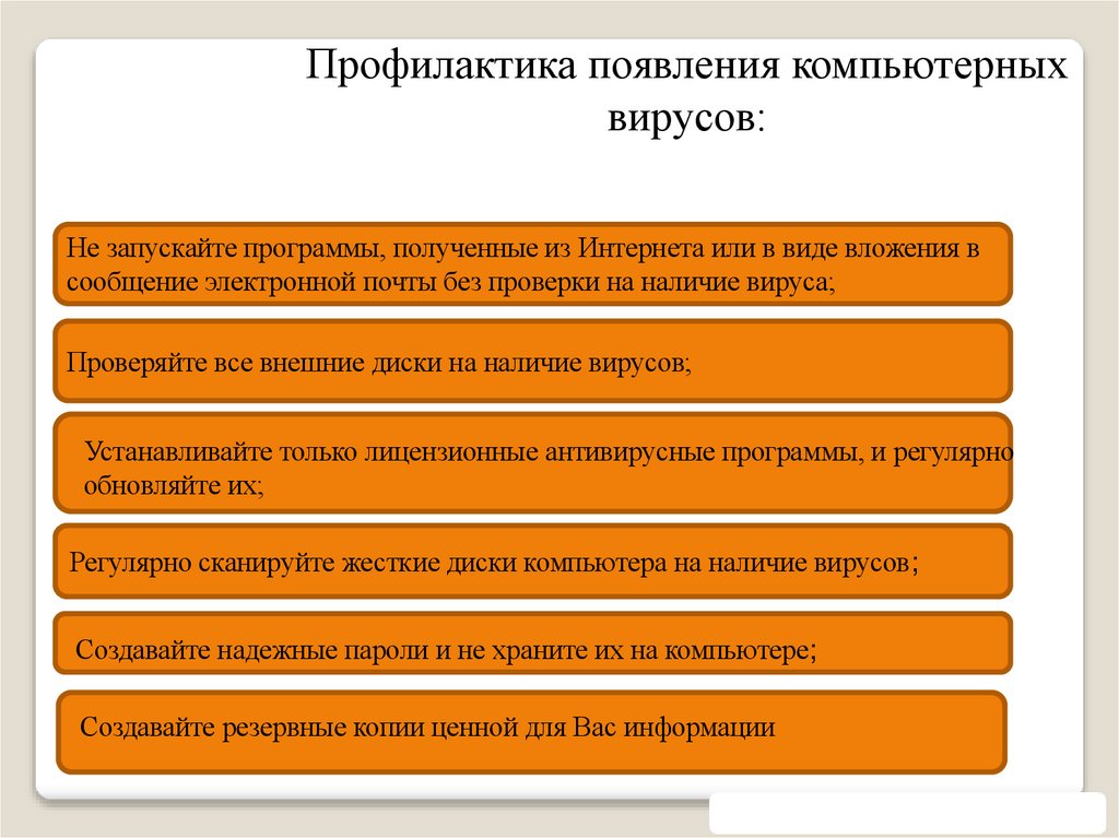 Профилактика появления компьютерныхвирусов: