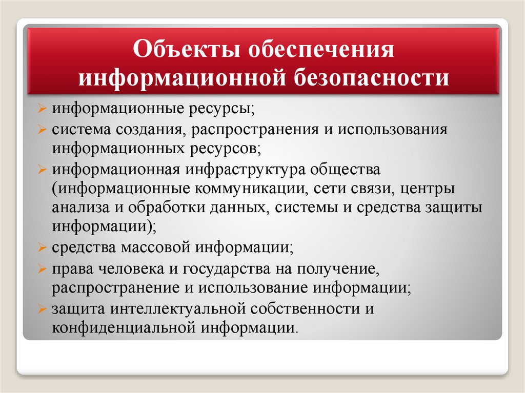 Объекты обеспеченияинформационной безопасности