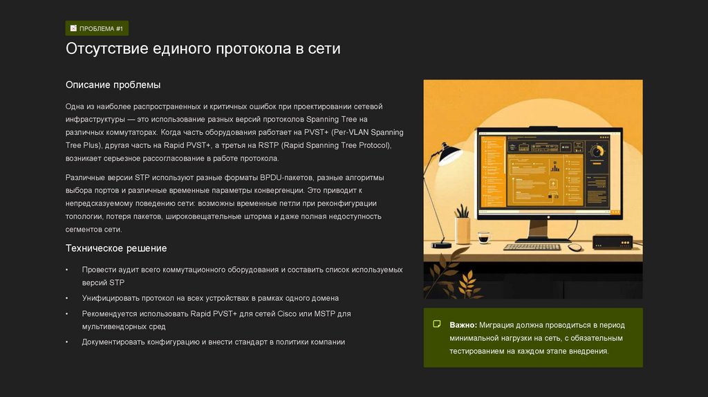 инфраструктуры — это использование разных версий протоколов Spanning Tree на