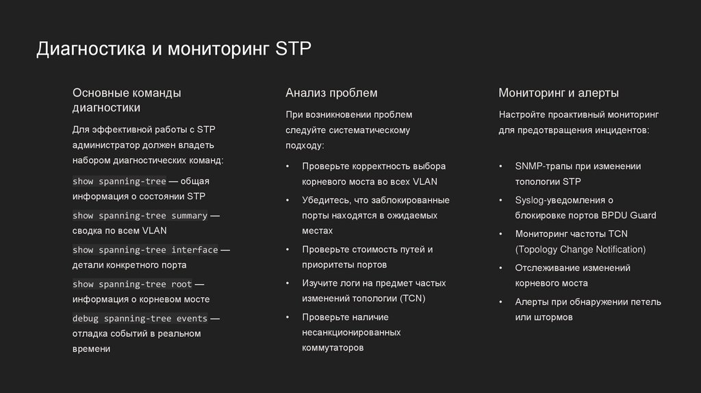 Диагностика и мониторинг STPОсновные команды