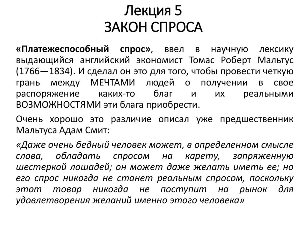«Платежеспособный спрос», ввел в научную лексикувыдающийся английский экономист Томас Роберт Мальтус