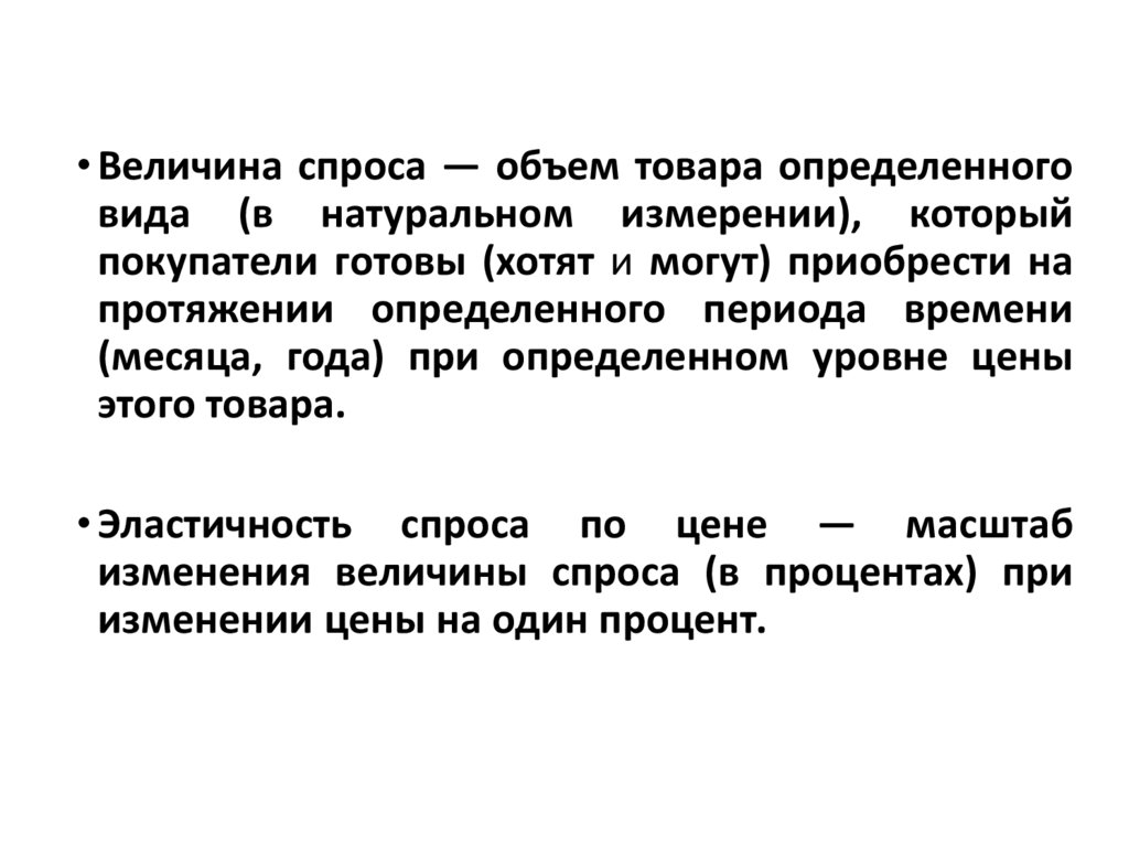 • Величина спроса — объем товара определенноговида (в натуральном измерении), который