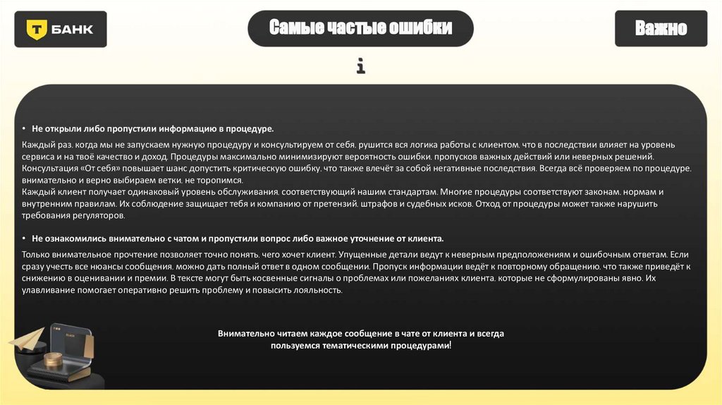 Консультация «От себя» повышает шанс допустить критическую ошибку, что также влечёт за собой негативные последствия. Всегда всё проверяем по процедуре,