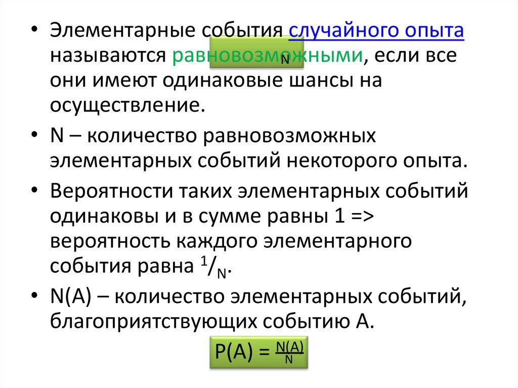 • N – количество равновозможных