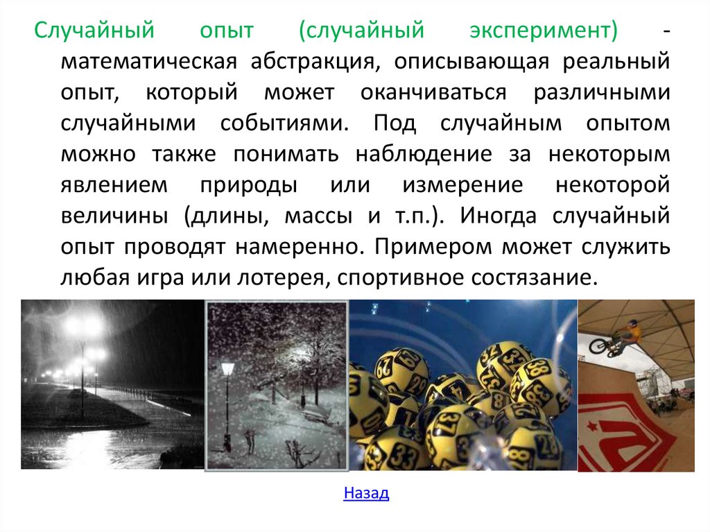 случайными событиями. Под случайным опытом