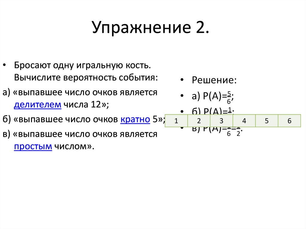 • Бросают однуигральную кость.