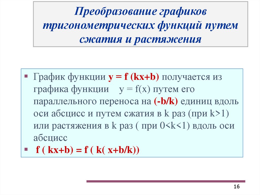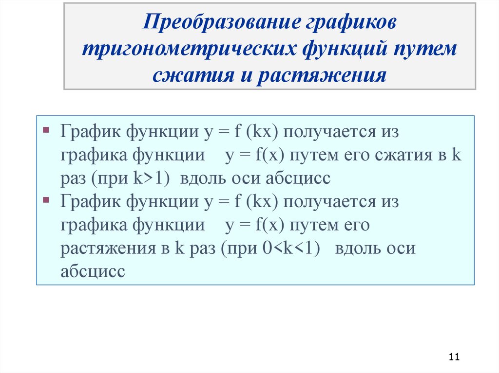 оси абсцисс и путем сжатия в k раз (при k>1)