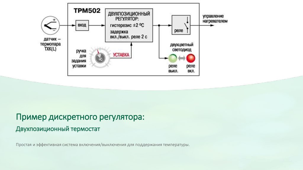 Пример дискретного регулятора:Двухпозиционный термостат