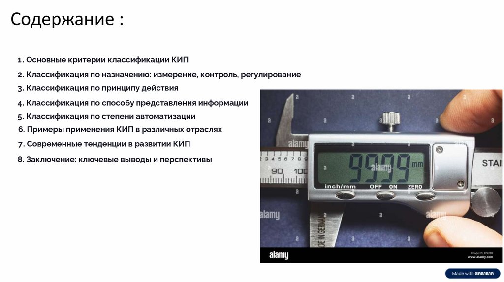 Содержание :1 . Основные критерии классификации КИП