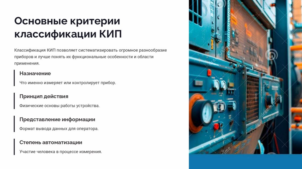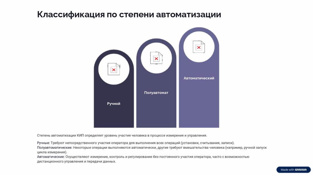 Степень автоматизации КИП определяет уровень участия человека в процессе измерения и управления.
