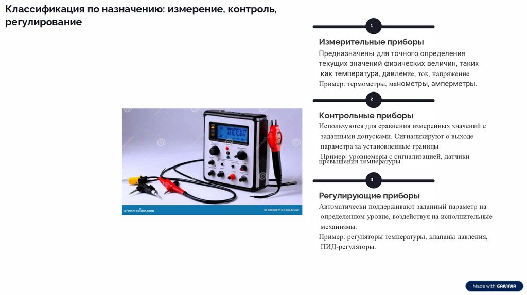 2. Классификация по назначению: измерение, контроль, регулирование