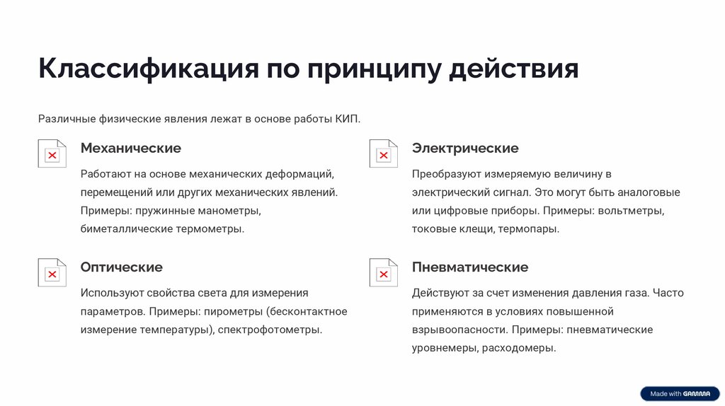 Классификация по принципу действияРазличные физические явления лежат в основе работы КИП.