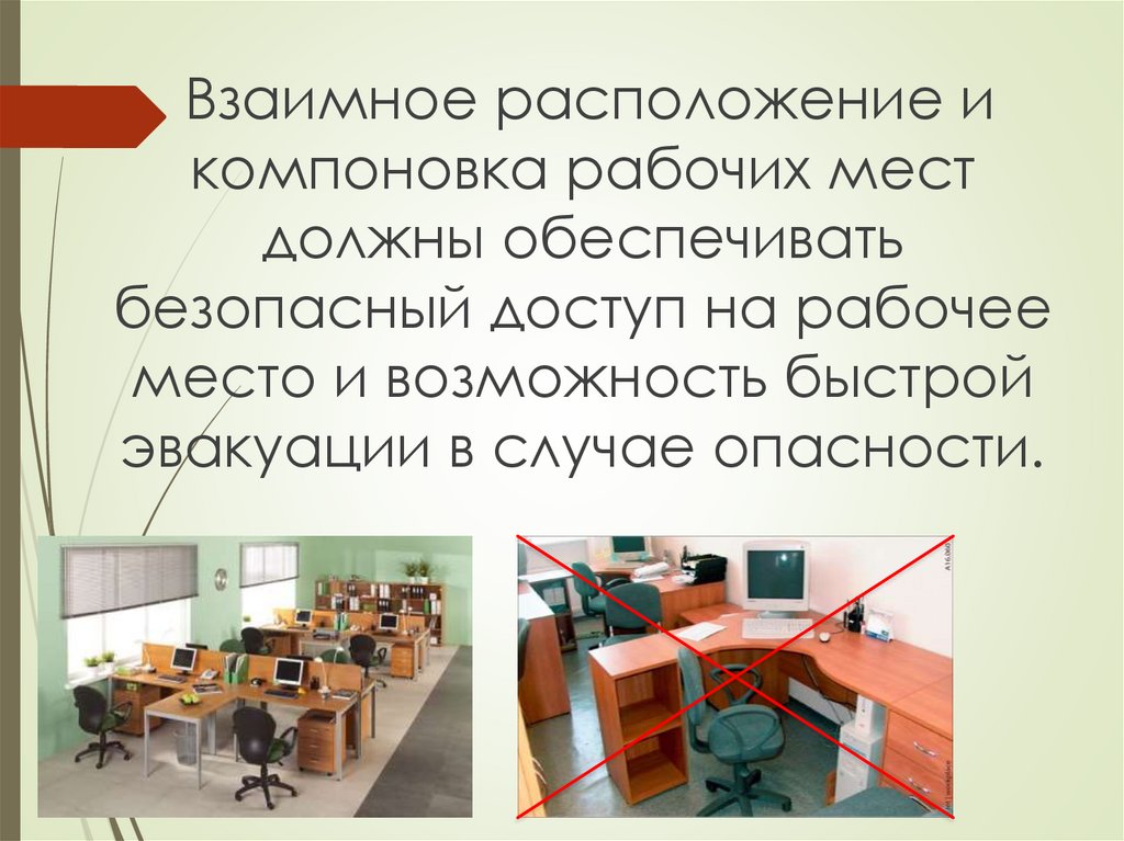 При организации рабочихмест необходимо учитывать то, что