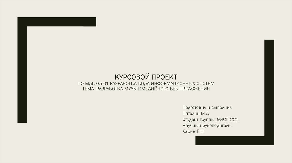 1. Курсовой проект по МДК.05.01 Разработка кода информационных систем Тема: Разработка Мультимедийного веб-приложения