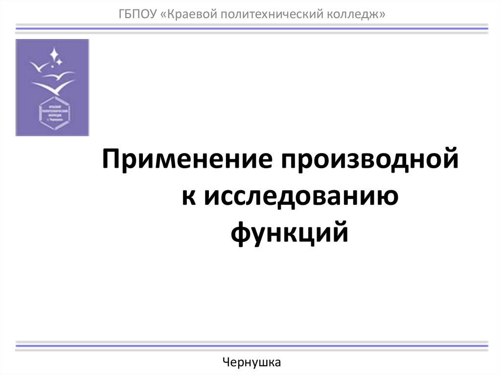 ГБПОУ «Краевой политехнический колледж»Применение производной