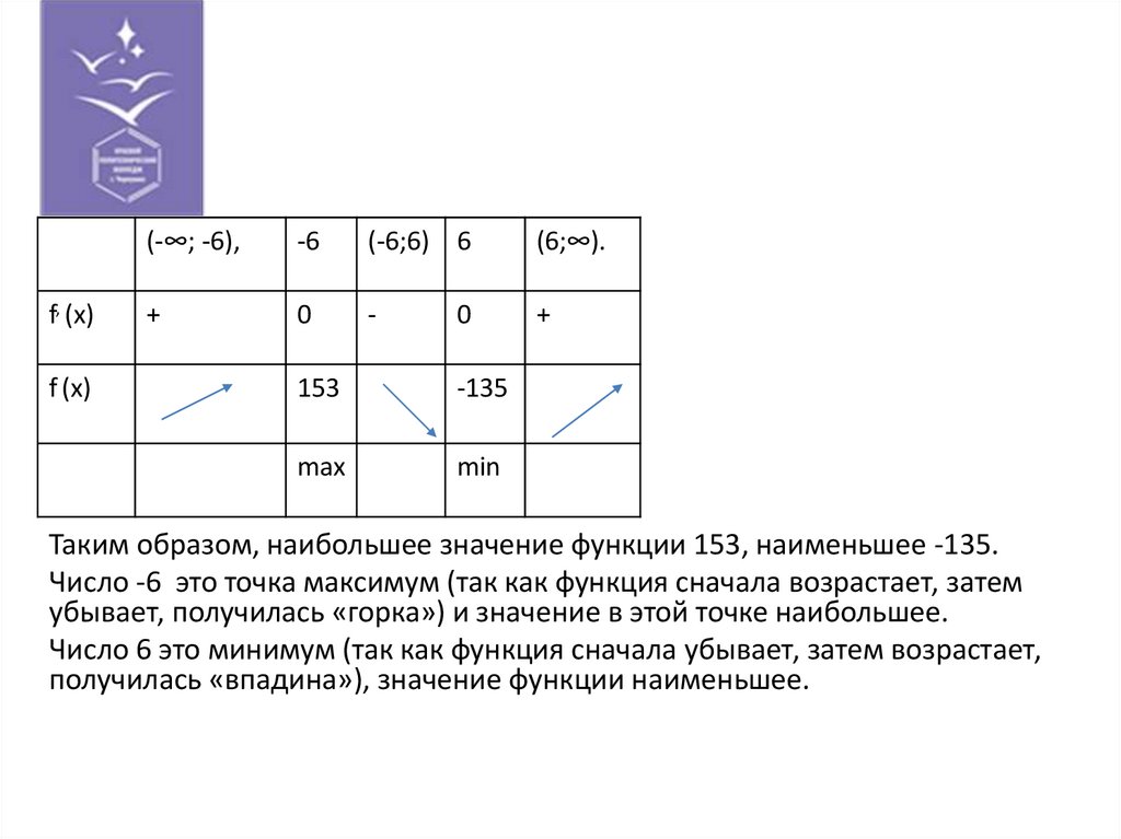 Таким образом, наибольшее значение функции 153, наименьшее -135.