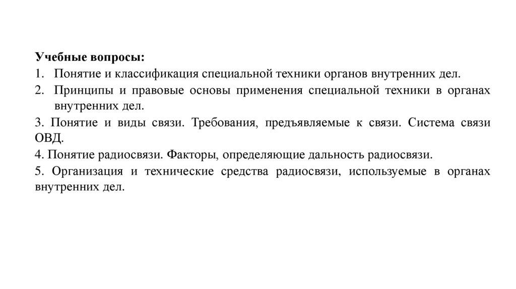 Учебные вопросы:1. Понятие и классификация специальной техники органов внутренних дел.