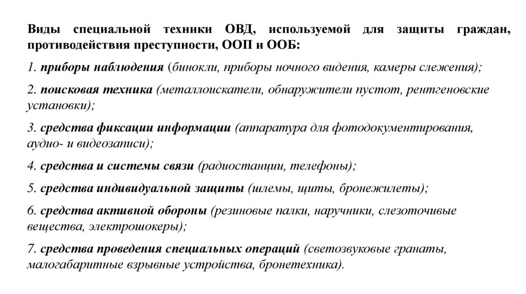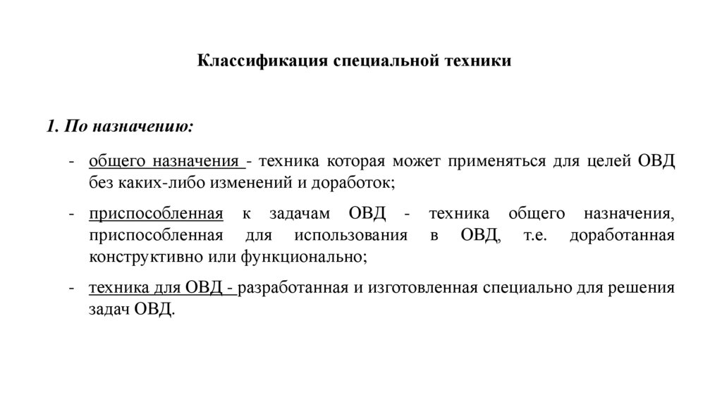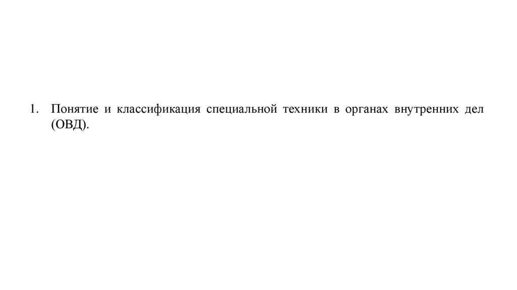 1. Понятие и классификация специальной техники в органах внутренних дел(ОВД).