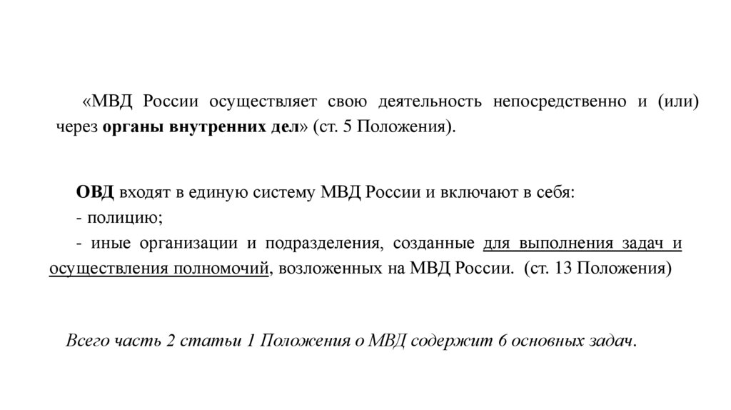 Всего часть 2 статьи 1 Положения о МВД содержит 6 основных задач.