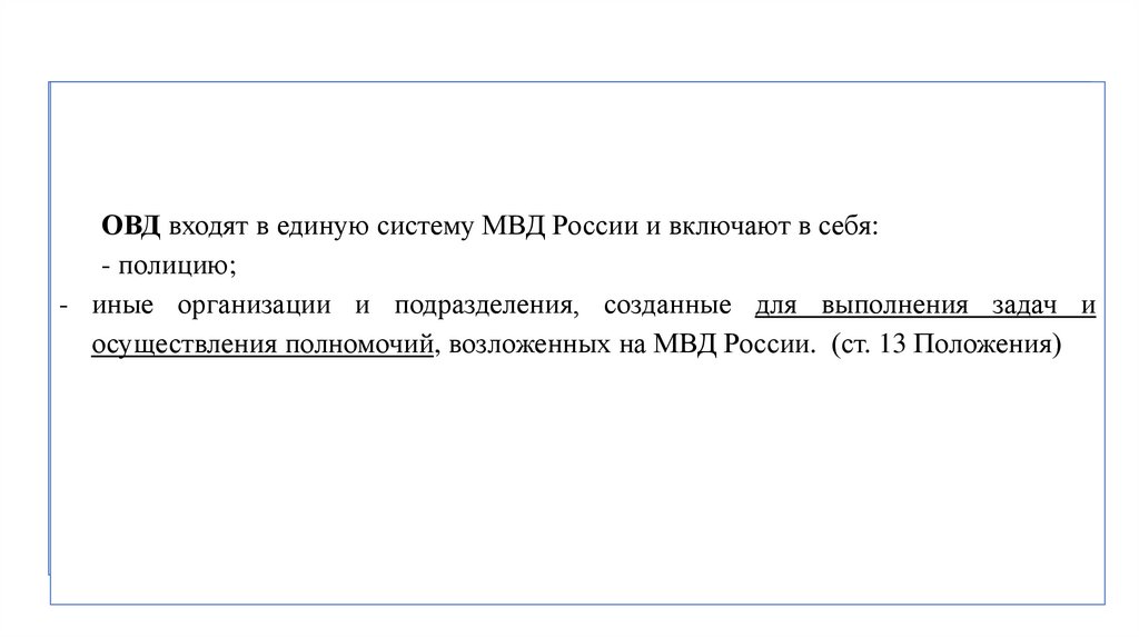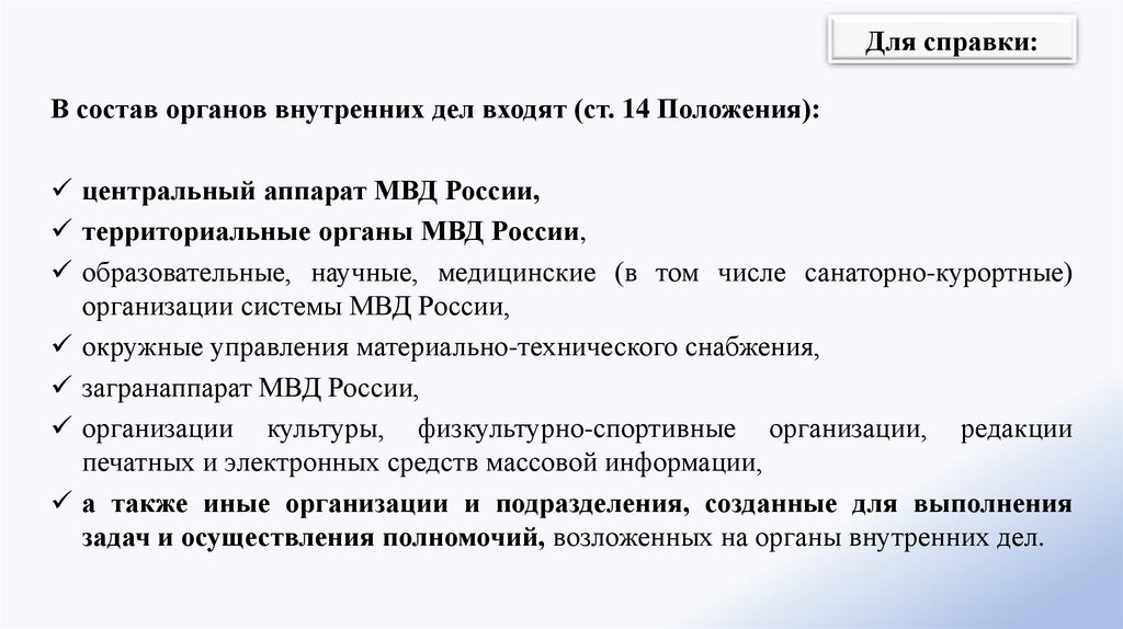Для справки:В состав органов внутренних дел входят (ст. 14 Положения):