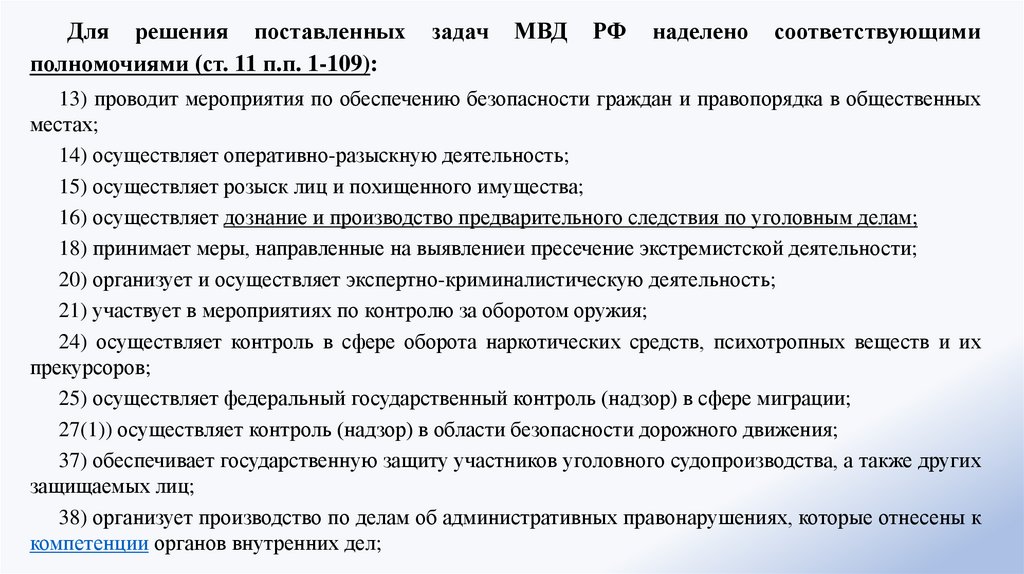 Для решения поставленныхполномочиями (ст. 11 п.п. 1-109):
