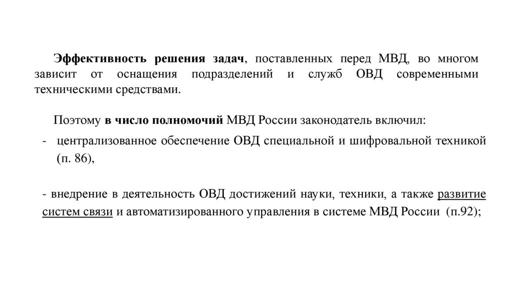 задач и осуществления полномочий, возложенных на органы внутренних дел.