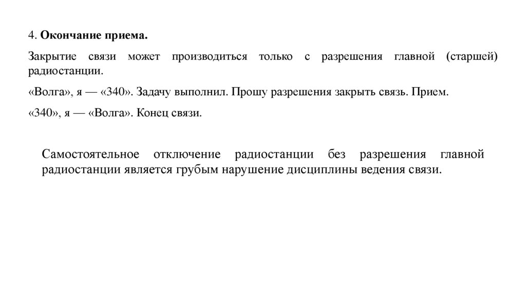 6. Основанием для прекращения радиообмена (прекращение работы)