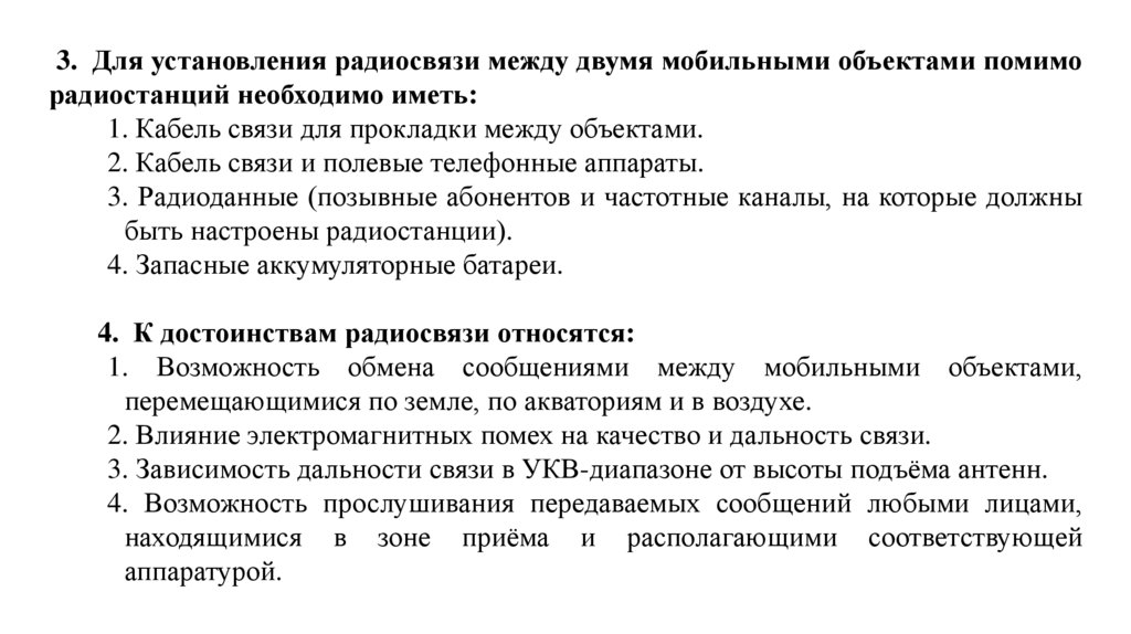 3. Для установления радиосвязи между двумя мобильными объектами помиморадиостанций необходимо иметь: