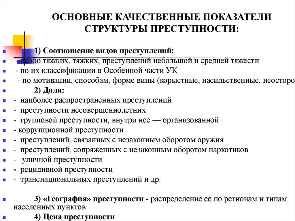 ОСНОВНЫЕ КАЧЕСТВЕННЫЕ ПОКАЗАТЕЛИСТРУКТУРЫ ПРЕСТУПНОСТИ: