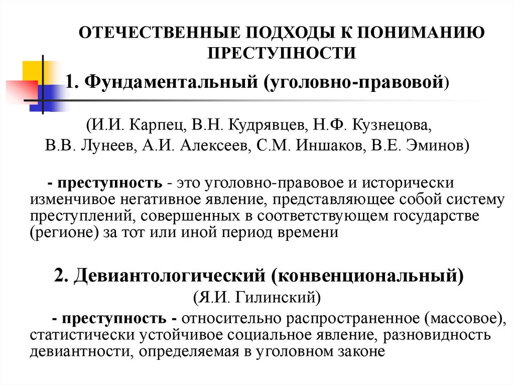 ОТЕЧЕСТВЕННЫЕ ПОДХОДЫ К ПОНИМАНИЮПРЕСТУПНОСТИ