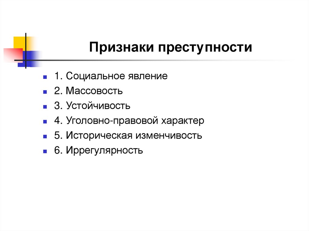 Признаки преступности1. Социальное явление