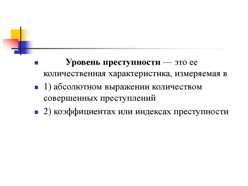 Уровень преступности — это ееколичественная характеристика, измеряемая в