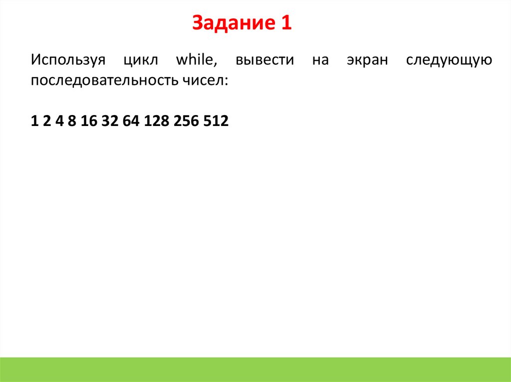 Задание 1Используя цикл while, вывести