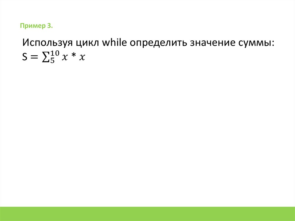 Пример 3.Используя цикл while определить значение суммы: