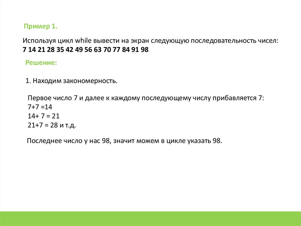 Пример 1.Используя цикл while вывести на экран следующую последовательность чисел: