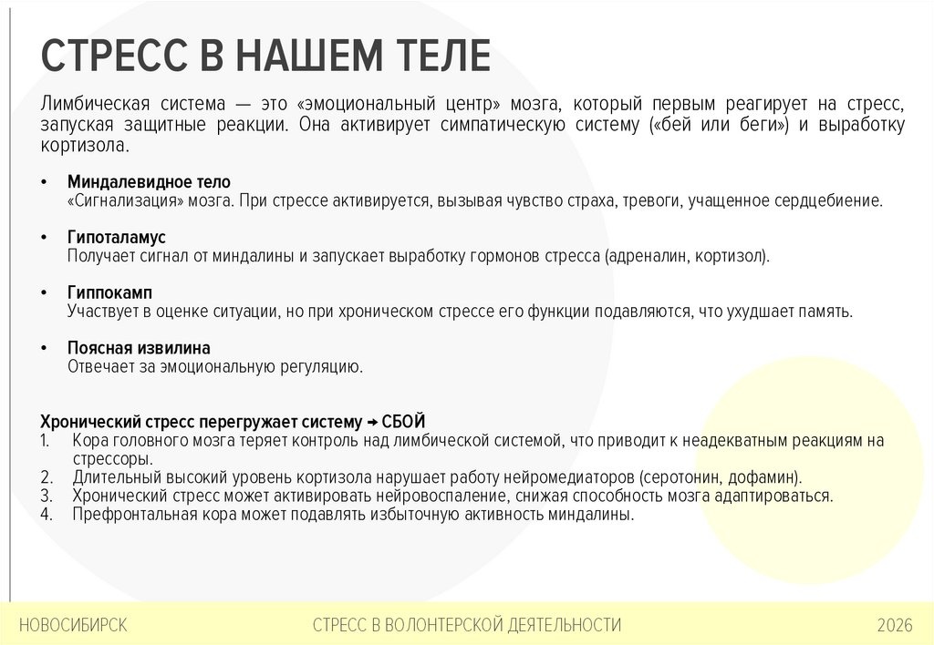 СТРЕСС В НАШЕМ ТЕЛЕЛимбическая система — это «эмоциональный центр» мозга, который первым реагирует на стресс,