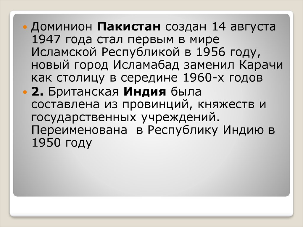Доминион Пакистан создан 14 августа1947 года стал первым в мире