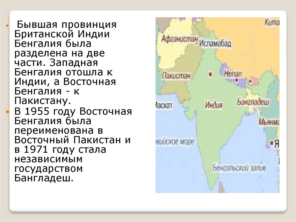 поддержала сторонников независимости Бангладеш, отколовшегося от