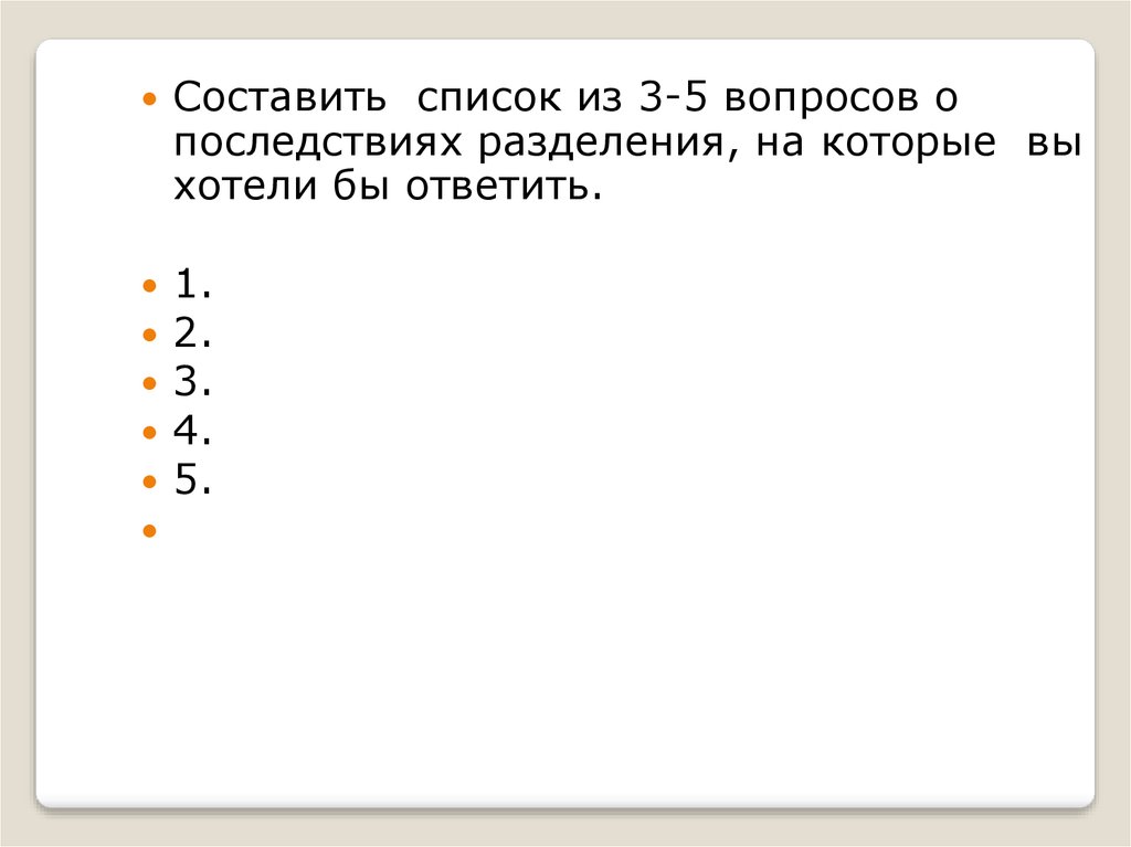 Составить список из 3-5 вопросов опоследствиях разделения, на которые вы