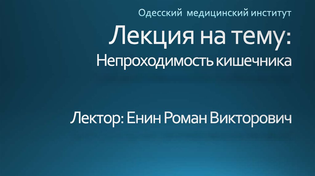 1. Лекция на тему: Непроходимость кишечника Лектор: Енин Роман Викторович